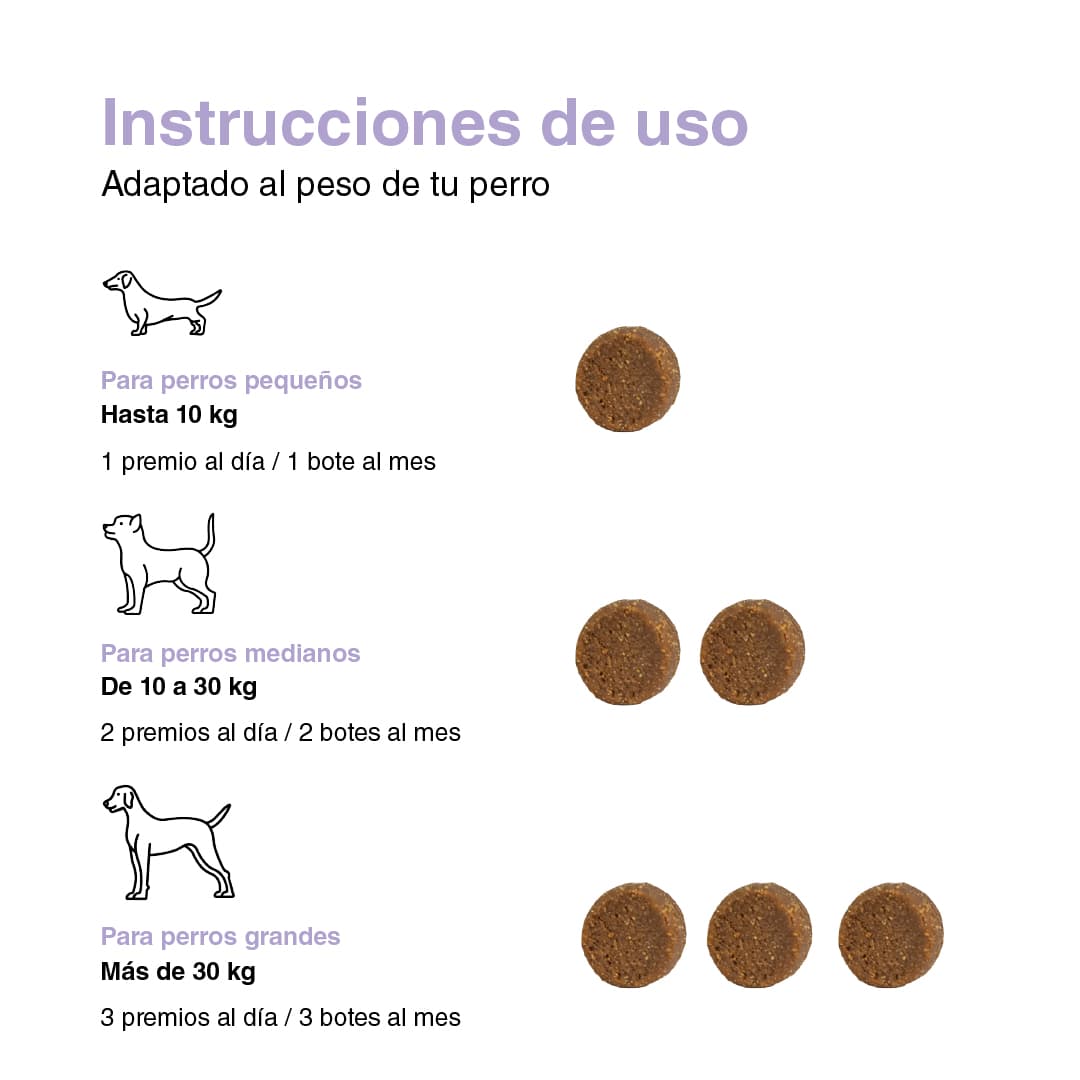 Los premios funcionan, mi perro está menos nervioso. La única desventaja es que debo pedirlos con antelación porque se agotan rápido.